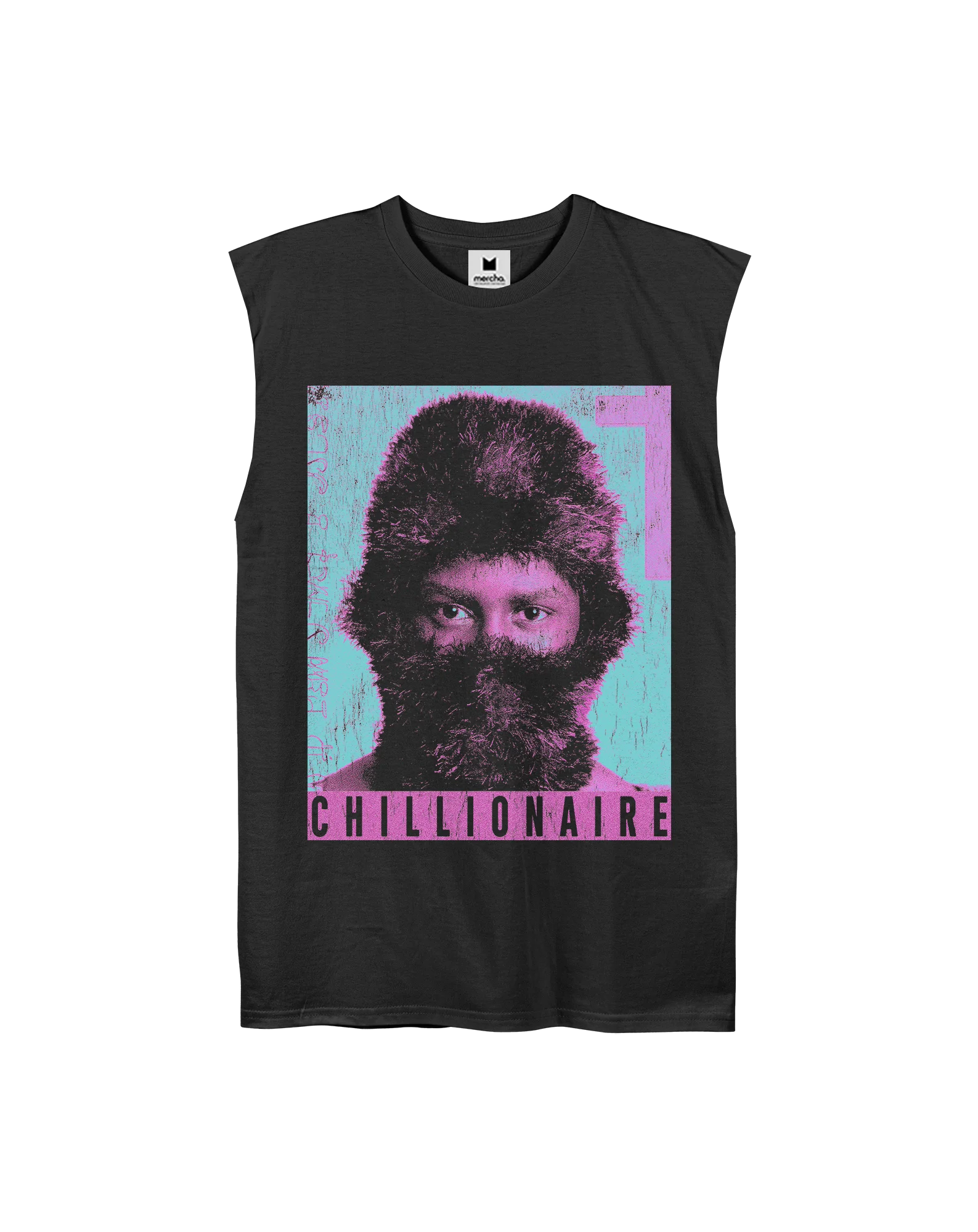 The Chillionaire sleeveless T-Shirt: By Benny Chill. This T perfectly mirrors Benny Chill’s daring and diverse fashion preferences. Available in classic black and white, the unisex T’s are made from 100% breathable cotton, with a luxurious feel giving you not only just comfort, but style – your ultimate go-to for an effortlessly laid-back look.