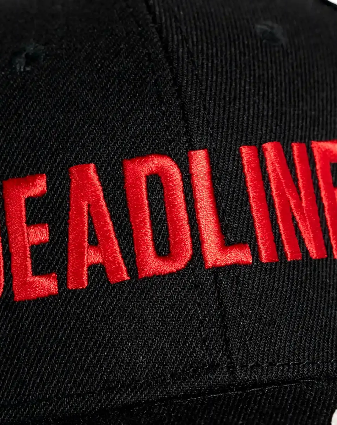 Introducing A-Reece’s signature black baseball cap from the DEADLINES collection, commemorating the 1 Year Anniversary of “DEADLINES: FREE P2.” Embroidered boldly in red caps, the word “Deadlines” commands attention on this classic yet statement cap – a must-have wardrobe staple.
