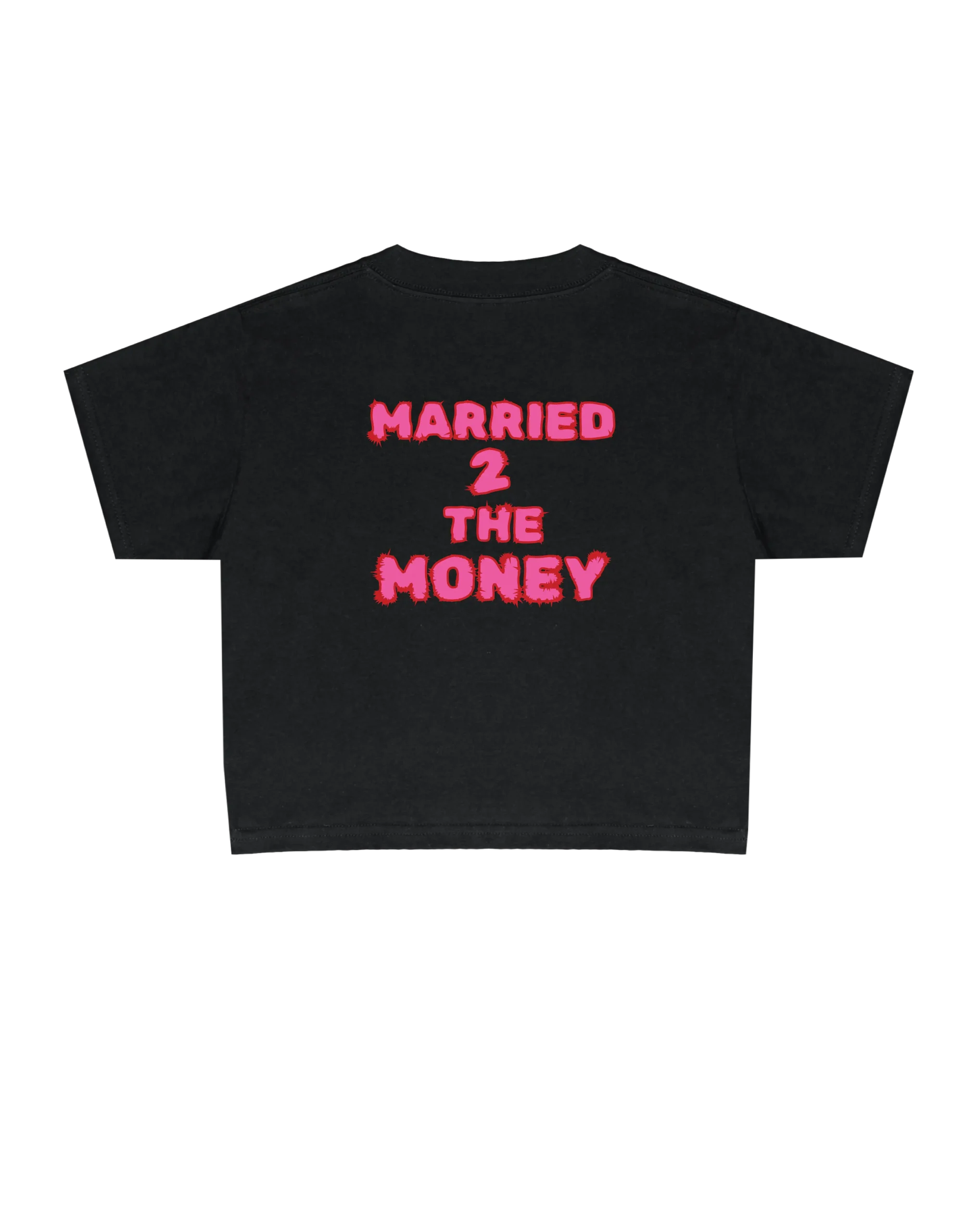 Step into boss energy with the Married To The Money Crop Top. Featuring a bold front graphic, this cropped tee is perfect for pairing with high-waisted jeans or joggers for an effortless streetwear vibe.