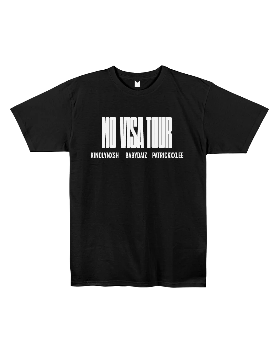 Keep it classic with the No Visa T-Shirt in Black. Featuring the Tour and Artists names on the front, this tee blends simplicity and boldness for everyday style..