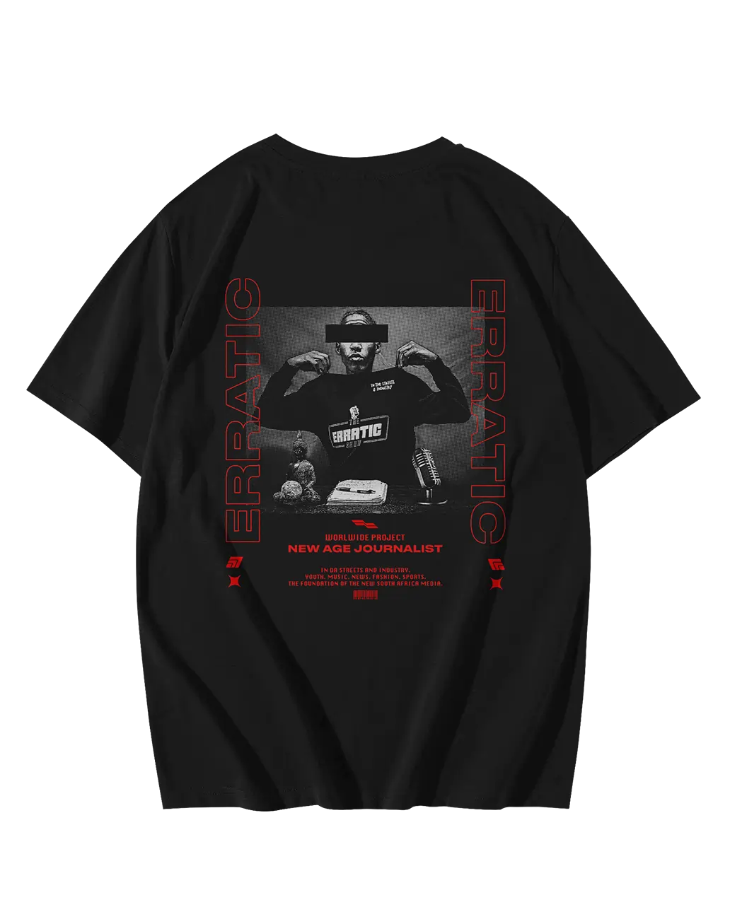 Turn heads with The Erratic Show T-Shirt, available in black or white. Featuring The Erratic Show logo on the front and a dynamic portrait of Erratic on the back, this tee is a must-have for any fan of hip-hop music and culture. Crafted from 100% breathable, durable cotton, it’s the perfect blend of comfort and style.